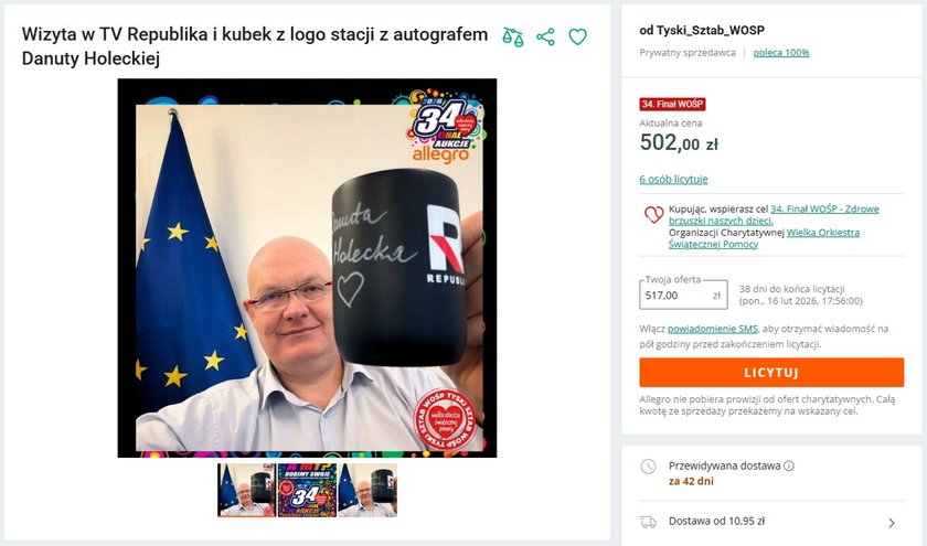 Aukcja, organizowana przez Tyski Sztab WOŚP, potrwa do 16 lutego. W chwili publikacji tego artykułu najwyższa oferta wynosiła już 517 zł. Organizatorzy zapewniają, że zwycięzca zostanie poinformowany o terminie wizyty w TV Republika z co najmniej trzydniowym wyprzedzeniem.
